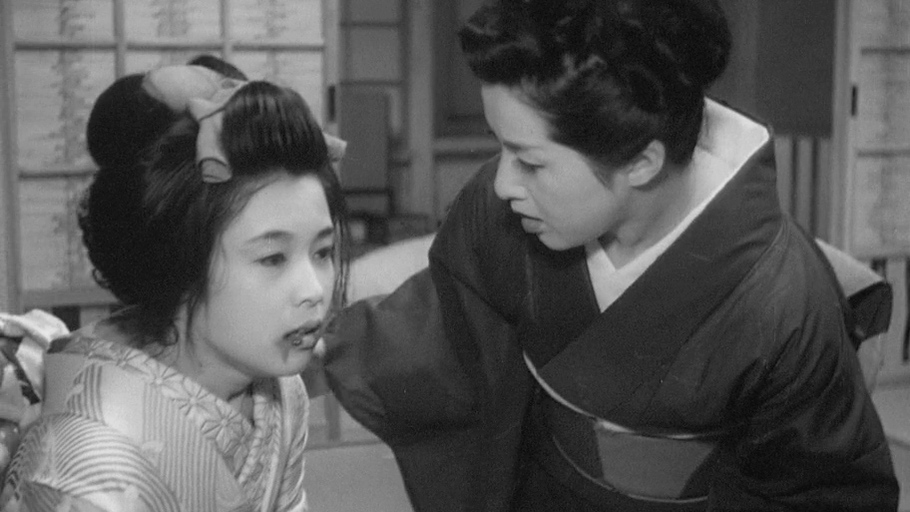 Gion Bayashi (La musica di Gion, 1953) di Mizoguchi Kenji è un film bellissimo e complesso, che in soli 85 minuti posa il suo sguardo sulla tradizione delle geishe e sulla loro vita, dall’apprendistato alla maturità, nel quadro del Giappone del dopoguerra. La sensibile e raffinata regia di Mizoguchi cala la realtà di queste ragazze in un contesto impalpabile di bellezza e cultura tradizionale, tra canti, danze, ampi interni adornati da tendaggi trasparenti e preziosi; ma allo stesso tempo rivela subito la brutalità del mestiere, che prepara le giovani con la massima severità solamente per farne preziosi trastulli destinati al consumo maschile.