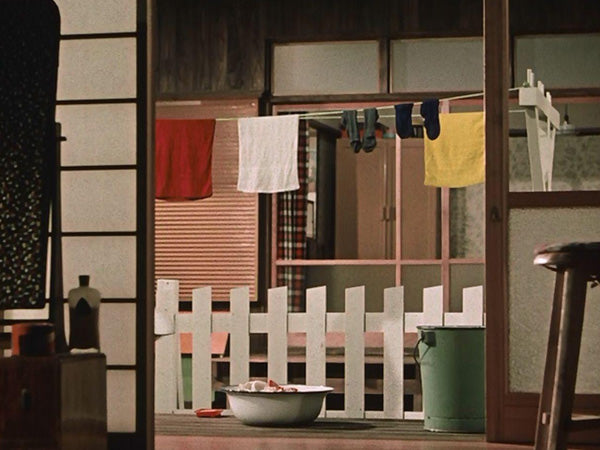 Solo in apparenza il suo film più schematico, Buon Giorno è invece uno dei suoi film formalmente più compiuti. Case, strade e linee del paesaggio sono stilizzati sino al sublime; eppure in questo incrocio di linee e forme geometriche la vita esplode, le generazioni si scontrano e la televisione è una nuova presenza, uno spartiacque col passato. Il padre dice: “non voglio comprarla: è una scatola per idioti”, ma l’insistenza dei figli lo obbliga all’acquisto. La tradizione resta nell’ombra a bere sake, mentre i giovani guardano il wrestling incollati allo schermo.