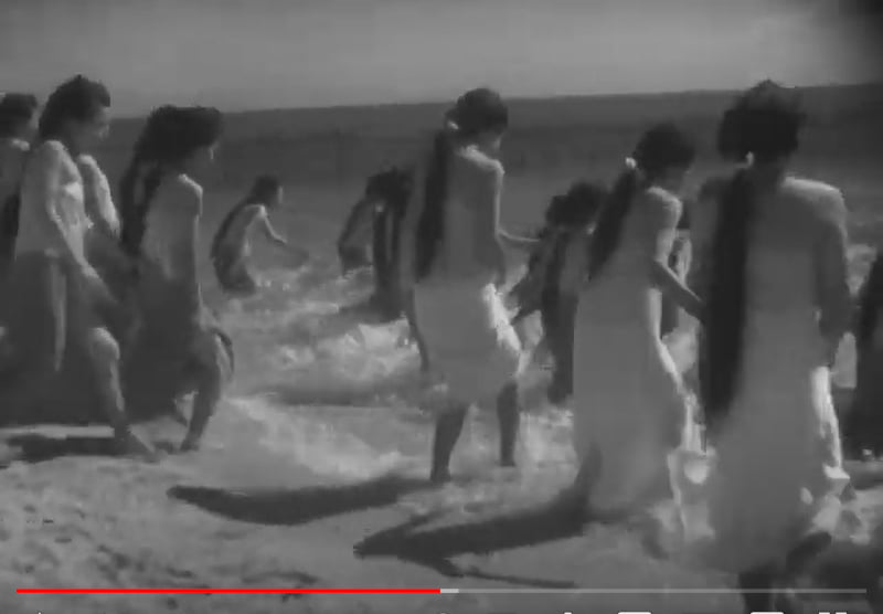 Film stupefacente, moderno, sia per struttura narrativa che per la pluralità del punto di vista. Colpisce in particolar modo la bellezza della scena della pesca, in cui corpi giovani e innocenti, liberi dalle costrizioni del kimono e della complessa architettura dell’acconciatura, si tuffano in mare come creature mitologiche, divinità dai lunghi capelli. Mizoguchi apre la scena con due carrelli laterali in cui le giovani si spogliano una ad una, guardando in macchina: c’è qualcosa di sacro nell’esposizione di tanta naturalezza e nudità. Poi, la corsa in acqua, i corpi liberi e sinuosi in mare, i primissimi piani rapidi su sguardi penetranti, selvaggi. Le donne sono il mistero del film, esplorato e temuto. Tanta selvatichezza pulsionale, che agita le protagoniste, era tenuta sotto stretto controllo dall’oppressiva società del tempo: la donna veniva oggettivizzata e idolatrata, ma l’idolatria non era che una forma del potere maschile.