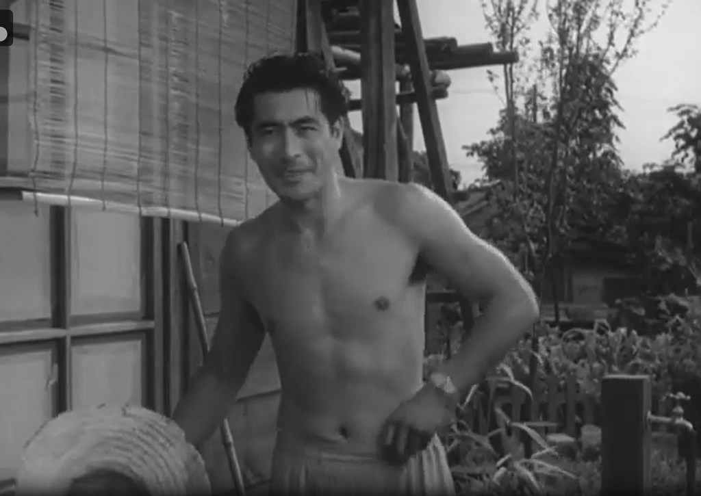 Da notare, infine, il rovesciamento del “male gaze” in uno sguardo femminile desiderante che indugia sul corpo di Mifune, divo dal corpo “oggettivizzato”. Più volte vediamo l’attore togliersi la camicia, rivelando una fisicità perfetta e sensuale che reca turbamento. Lo spostamento dell’attenzione sul corpo maschile trova in Mifune il protagonista privilegiato: prima di Chiba, anche Akira Kurosawa lo aveva mostrato a petto nudo ne L’Angelo ubriaco (1948) ma è Kinoshita ad esaltarlo eroticamente in Wedding Ring (1950). Chiba compie un passo ulteriore contrapponendo alla pelle dolce e disponibile di Mifune l’immagine volitiva di Hara: un motivo in più per amare Tokyo Sweetheart, un’opera piena di cinema e di godimento.