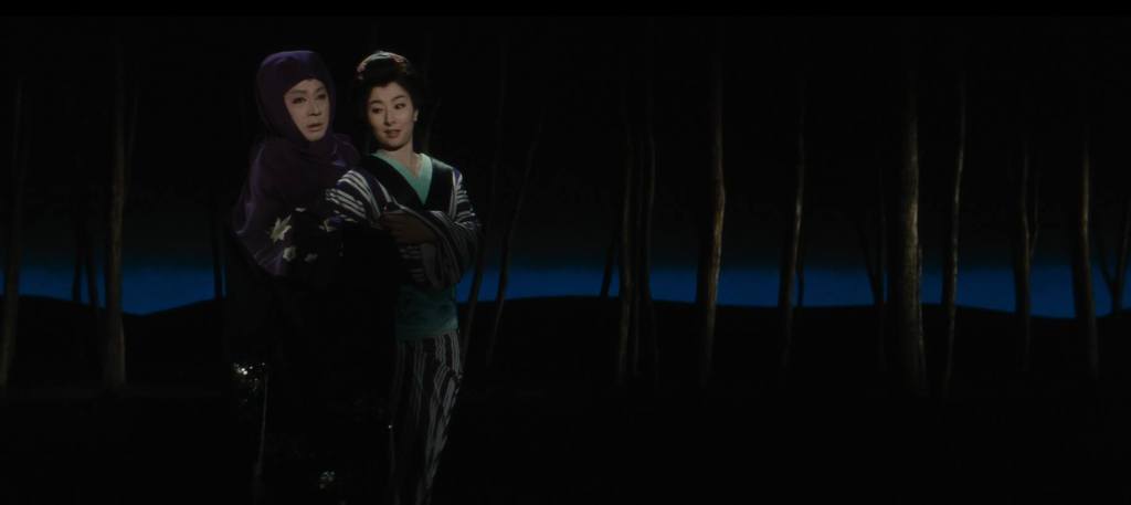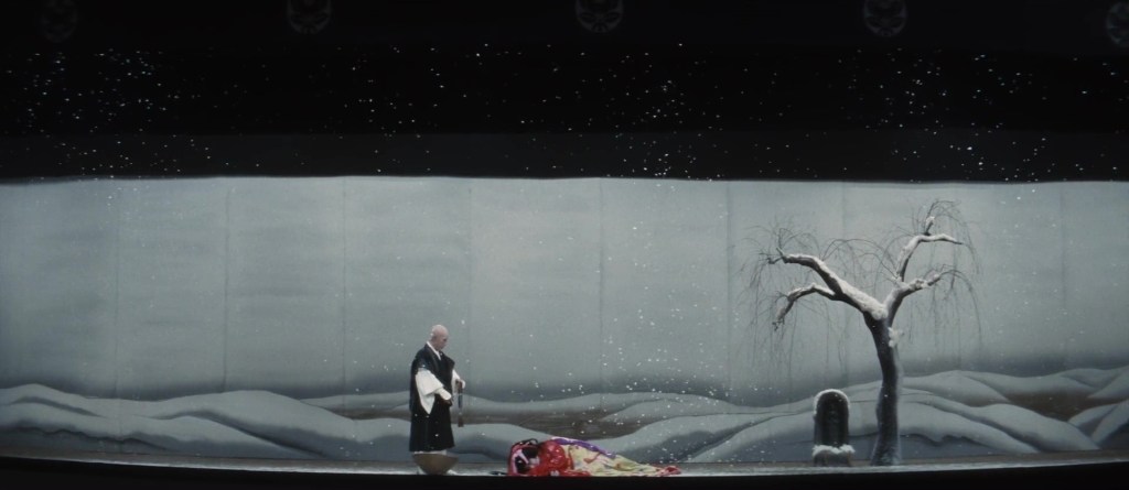 Intenso e perturbante, An Actor’s revenge trasporta il teatro tradizionale sullo schermo panoramico e lo trasforma in un’esperienza cinematografica totale. Con una padronanza spaziale che ha pochi eguali, il regista produce un’immagine “infinita” tanto orizzontalmente che in profondità: la macchina da presa abolisce i confini del palcoscenico e ne moltiplica la magia immaginaria.