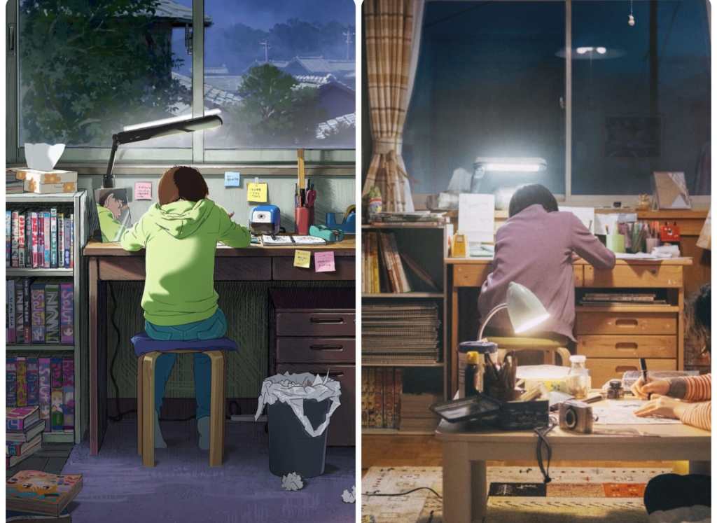 Koreeda—who subtly paid homage to the legacy of anime in the collective imagination with Last Scene, shaped by delicate and awkward emotions, infinite clear skies, and liminal states between reality and dream—seems the ideal artist for a remake that turns drawing into matter and love into a living, tangible “body.” In a world where speaking words of love seems increasingly difficult, Kiyotaka Yoshiyama’s Look Back centered on the young Fujino and Kyōmoto as the protagonists of a fleeting yet intense redemption, where emotion becomes so precious that it transforms into golden gleams (the film’s signature chromatic choice). The promotional images of Koreeda’s forthcoming live-action adaptation—which we await with great excitement—seem to preserve that salvific shimmer embracing the human experience.