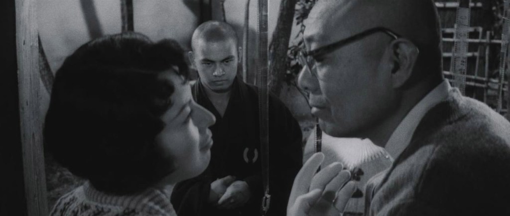La visione del film è profondamente angosciante, soprattutto per via delle continue ingiustizie commesse ai danni di Jinen. Kawashima orchestra la narrazione conducendoci nel ventre più oscuro di una società che ostenta, normalizzandolo, il proprio disfacimento morale. La povertà è uno stigma (emblematizzato dalla “Valle dei mendicanti” il luogo di disperazione da cui proviene Jinen), e il monotono canto dei Sutra, che spira dalle stanze del Tempio, non offre alcun conforto.
